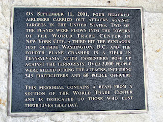 The memorial includes a three-foot steel beam from ground zero at the World Trade Center, and a